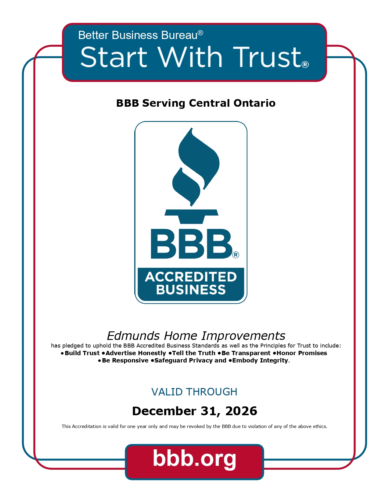 Serving the community since 1947, Edmunds Home Improvements changed hands to Steve Gibson in 1989. Steve is a local resident who has more than three decades of experience in home improvement. When you choose Edmunds Home Improvements, you’ll also have peace of mind in knowing we stand behind our work and are fully insured (WSIB and $5 million public liability). Flexible financing OAC is also available to help you achieve the upgrades of your dreams within your budget!